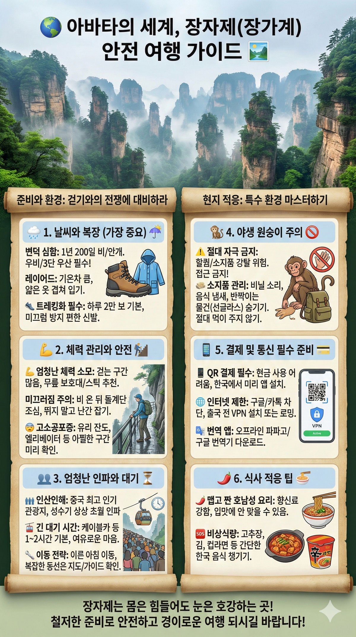 천자산(天子山)은 중국 후난성 장가계 국립공원 내에 위치한 명승지로, 독특한 지형과 아름다운 경관으로 유명합니다. 특히, 영화 ‘아바타’의 촬영지로 알려져 더욱 주목받고 있습니다