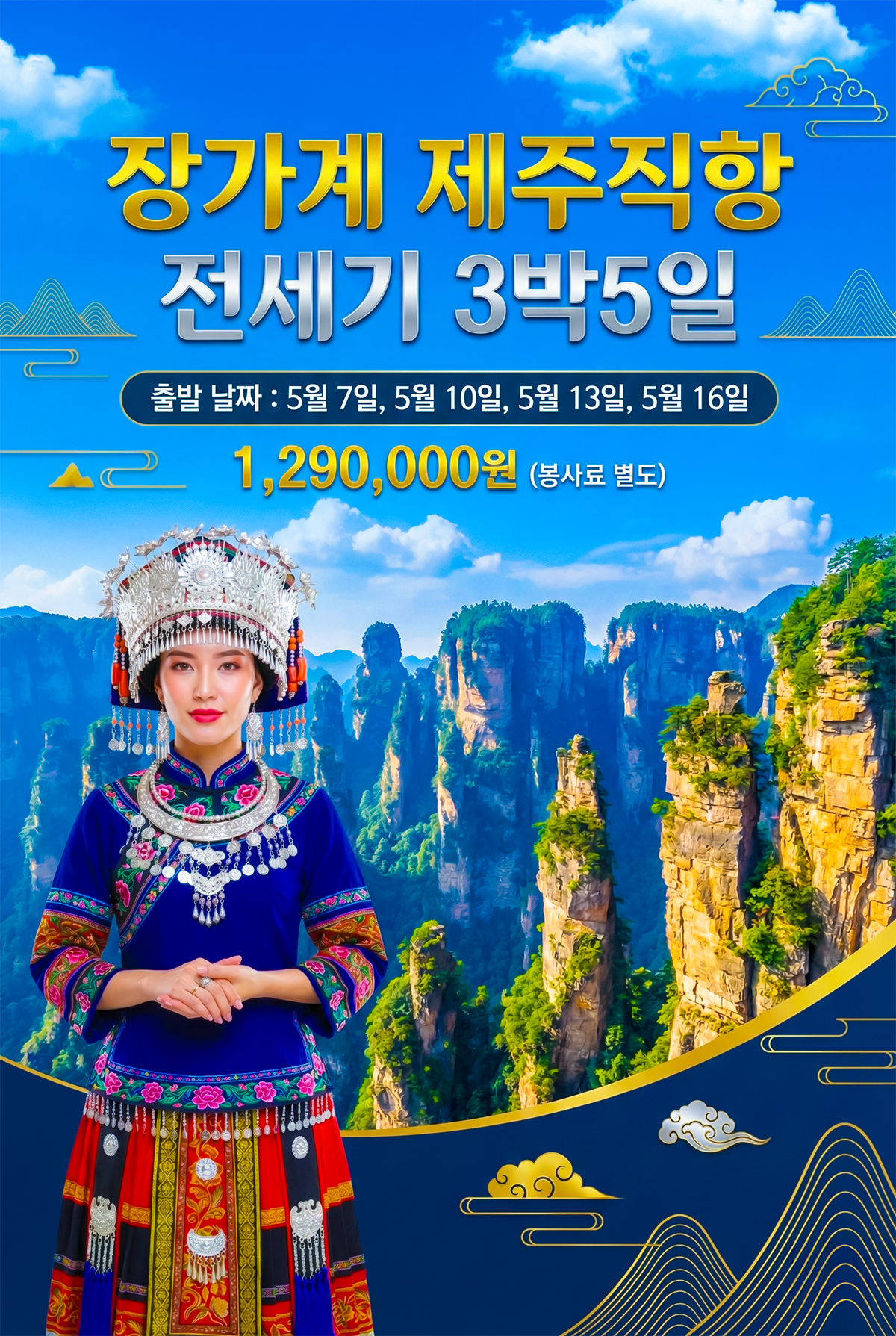 ✈️ 장가계 02:30  ✈ 제주 06:05  2시간30분 비행