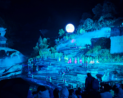 천문호선쇼(天门狐仙秀)는 중국 장가계의 천문산을 배경으로 펼쳐지는 유명한 야외 공연입니다. 이 공연은 중국의 전통 설화인 ’백호선녀전(白狐仙女傳)’을 소재로 한 뮤지컬로, 실제 천문산의 웅장한 자연 지형을 그대로 무대로 사용합니다. 500명 이상의 출연진이 화려한 조명과 음악을 활용해 화려하고 환상적인 분위기를 연출하며, 장가계 여행의 필수 관광 코스 중 하나로 꼽힙니다.