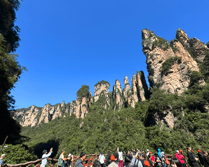 원가계(袁家界)는 중국 후난성 장가계 국가삼림공원 내에 위치한 대표적인 관광지로, 영화 ‘아바타’의 촬영지로도 유명합니다. 이곳은 석영사암으로 이루어진 독특한 기암괴석과 수려한 자연경관으로 많은 관광객들의 발길을 끌고 있습니다 • 천하제일교(天下第一桥): 두 개의 거대한 봉우리를 자연적으로 연결하는 석교로, 세계에서 가장 높은 자연 석교 중 하나로 알려져 있습니다.