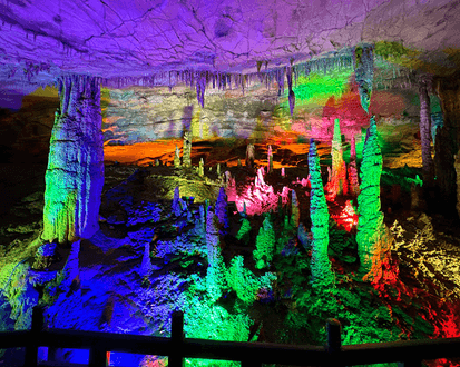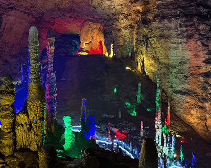 황룡동굴(黄龙洞)은 중국 후난성 장가계(张家界)에 위치한 유명한 석회암 동굴로, 아시아에서 가장 큰 석회암 동굴 중 하나입니다. 내부에는 기이한 형태의 종유석과 석순, 지하 강, 폭포 등이 아름답게 펼쳐져 있으며, 조명으로 인해 화려한 경관을 연출합니다. 동굴 내의 관광로는 약 2km 정도이며, 대표적인 볼거리는 “용왕보좌(龙王宝座)”, “정해신침(定海神针)” 등입니다. 황룡동굴은 장가계를 방문하는 관광객들이 반드시 찾는 인기 명소입니다.